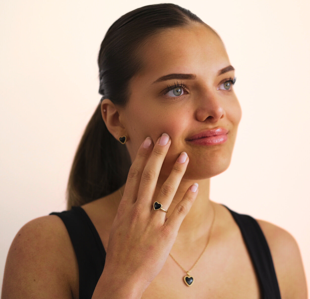 Die "Heart Wrap Black" Kette und Anhänger – Edgy Luxus in 18K vergoldetem Gold.