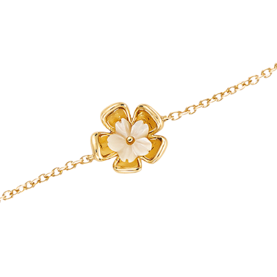 In the middle of the 5 leaves bracelet you will find a cute white flower.