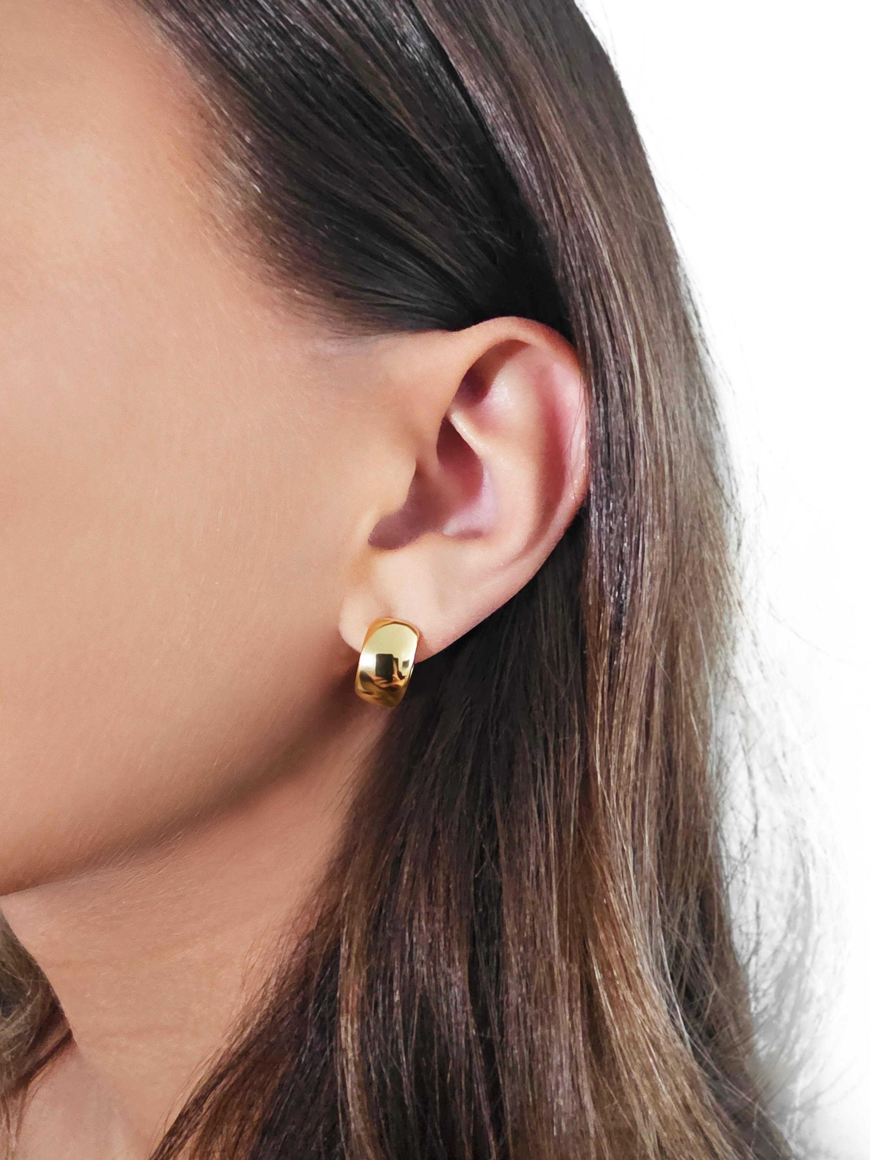 Add a touch of charm to your look with these wide, beautiful 18K gold-plated earrings. This elegant piece completes any outfit. Perfect for those who appreciate timeless elegance with flair.