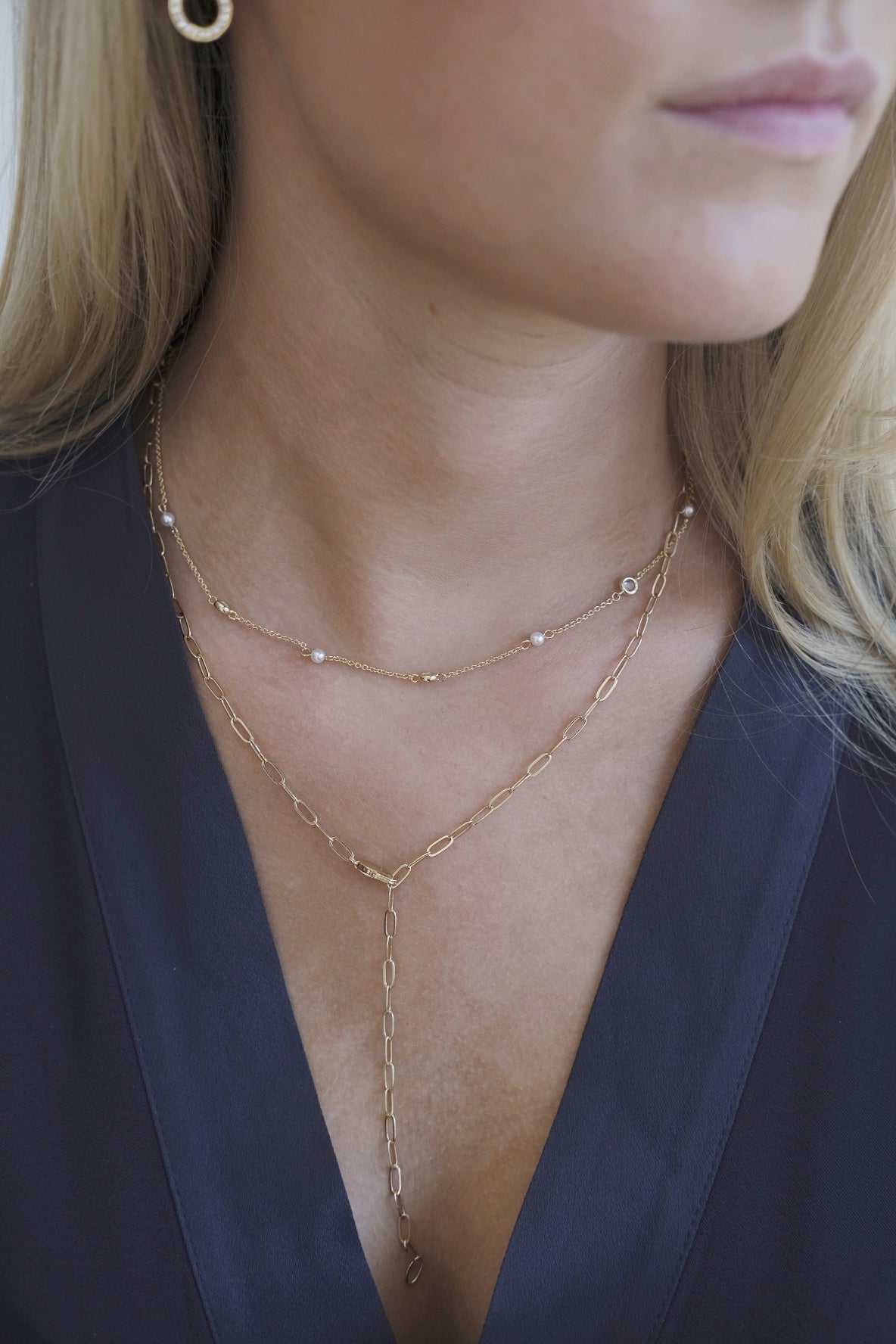The Eternal Elegance necklace is the perfect choice for those seeking timeless beauty and refinement. This elegant necklace features alternating pearls and flat, round cubic zirconia stones, creating a balance between elegance and modern luxury. Carefully crafted from 18K gold plate, the design gives the necklace a lustrous finish that exudes both luxury and refinement. Gift tip: This necklace makes a beautiful gift for a bride-to-be.