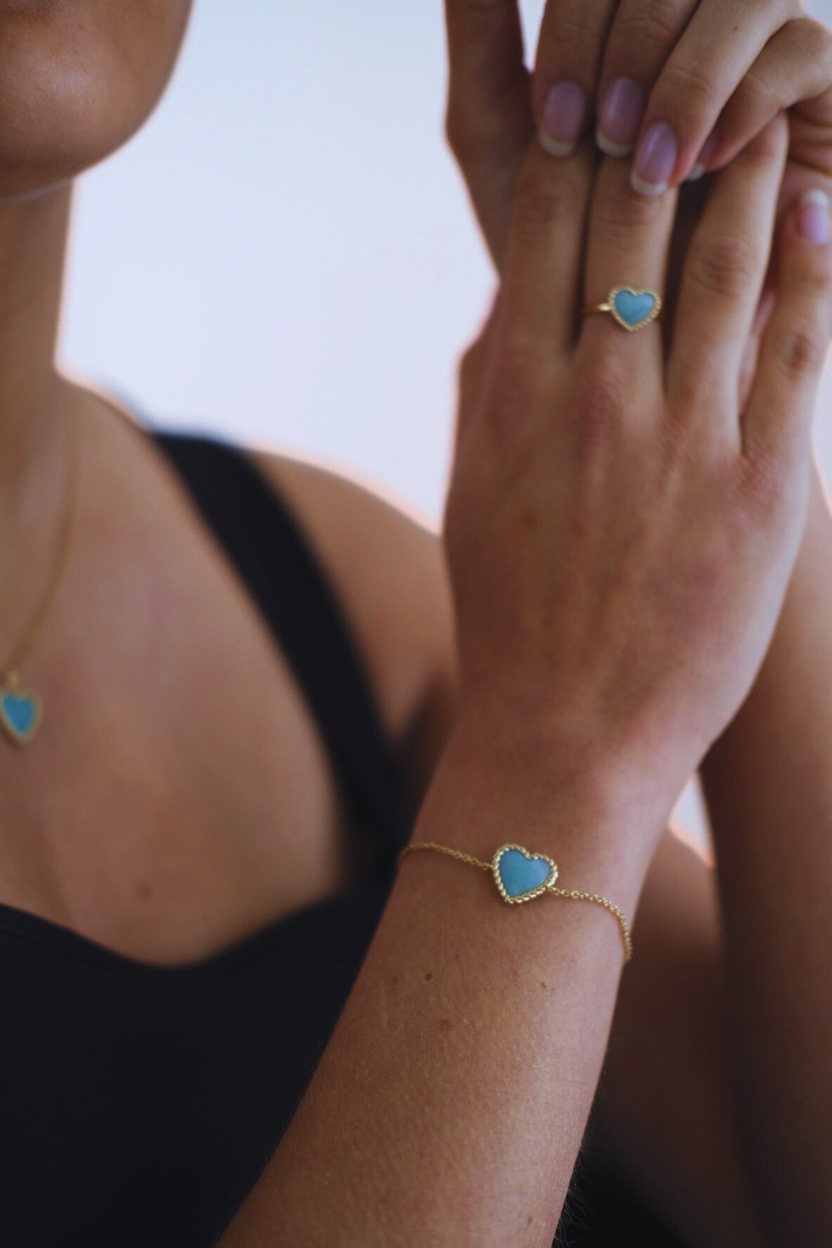 The "Heart Wrap Sea Blue" necklace and pendant can be worn solo for a subtle yet bold look, or paired with other CHIVAL pendants for a layered look. Wear it on a CHIVAL gold chain for the ultimate luxurious look. This piece is also available in our webshop.