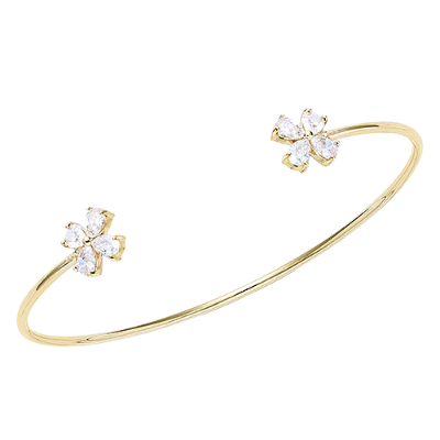 Make a statement with this beautiful "Little Flower" bracelet. Delicate and elegant, it's a real eye-catcher. This open bracelet subtly wraps around your wrist and features two delicate flowers at each end, each studded with sparkling zirconia. Perfect for adding a playful and feminine touch to your look. Complete your jewelry collection with the Little Flower Bracelet – minimalist with a touch of glamour.