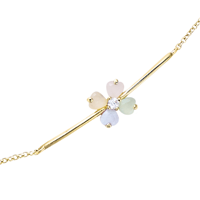 This adorable bracelet is a must-have for any jewelry lover. The delicate flower, with its four petals in soft pastel colors, adds a playful and fresh touch to your look. Perfect for adding a subtle, cheerful touch to your outfit. Ideal for those who appreciate soft colors and a light, elegant flair. A beautiful gift for yourself or a loved one.