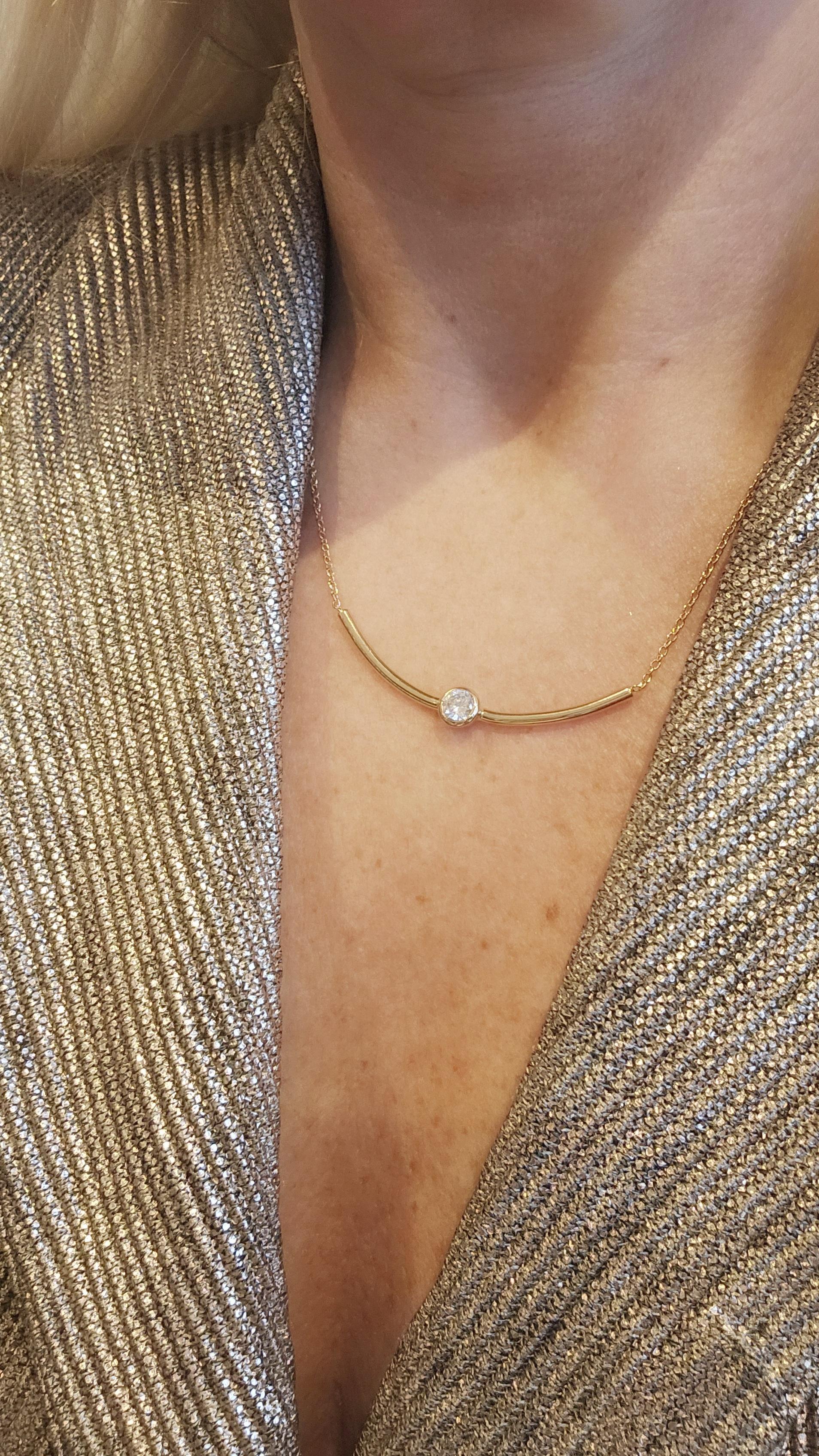 Een minimalistische ketting met zirkonia is ideaal voor wie houdt van verfijnde elegantie zonder overdaad. De Auri ketting combineert moderne lijnen met tijdloze klasse en is perfect als dagelijkse gouden ketting of als subtiel statement sieraad.